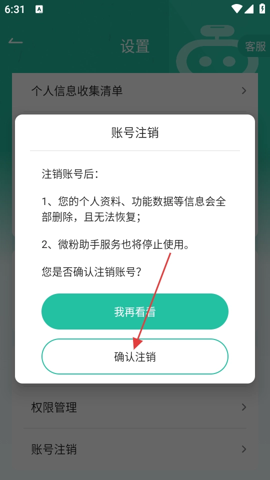 4、在账号注销确认界面,点击【确认注销】按钮,即可完成账号注销操作。