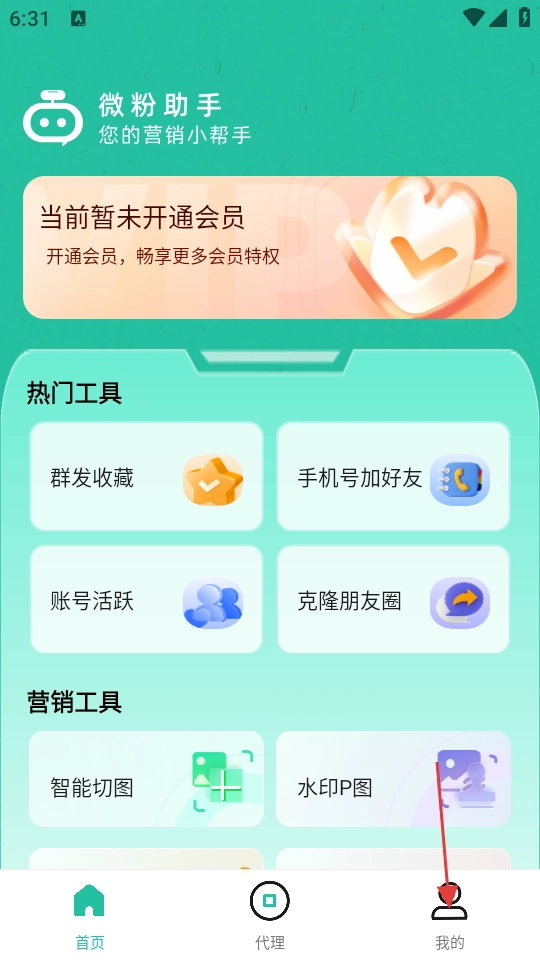 1、打开微粉助手主界面后,点击底部的【我的】按钮,即可进入个人页面。