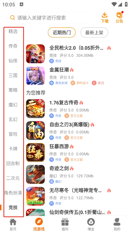 在“找游戏”栏目里,我们对游戏进行了更细致的分类,涵盖传奇、仙侠、玄幻、冒险等多种类型。