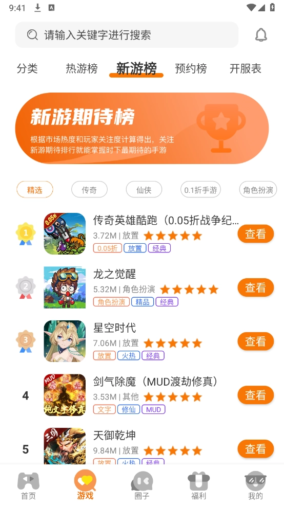 首页和游戏栏目里有不少游戏资源,像新游、热搜榜以及预约榜单都能找到。