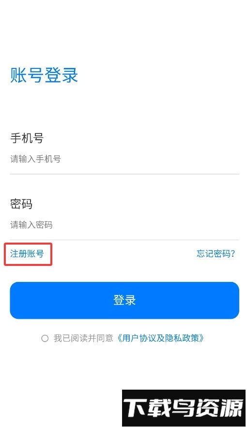 2、在登录页面的左下方,点击“注册账号”按钮,即可进入新用户注册流程。