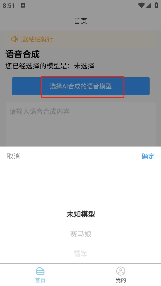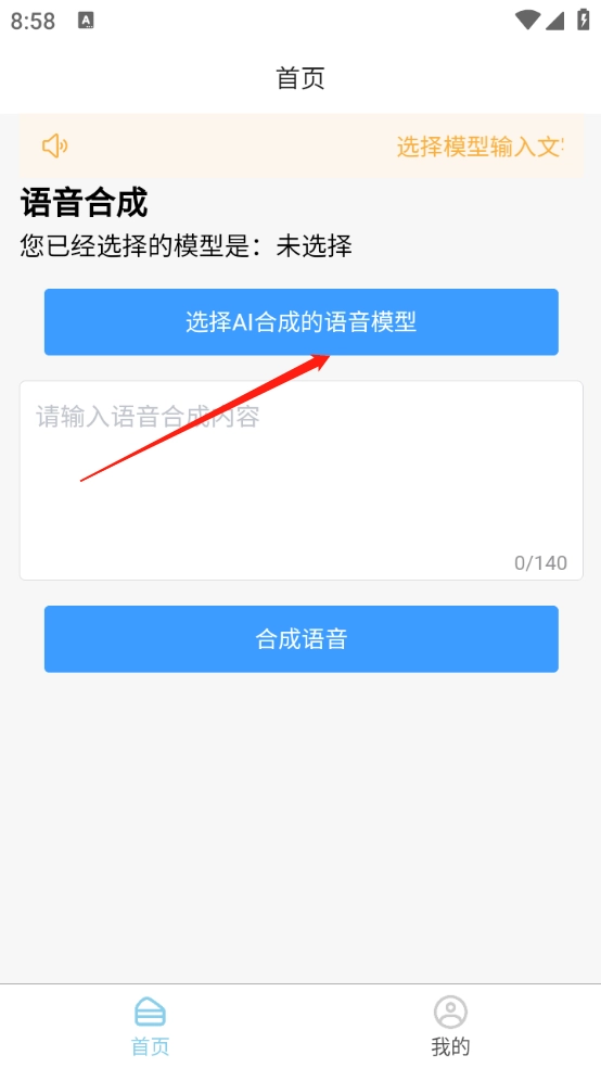 来到首页,点击选择AI合成的语音模型。