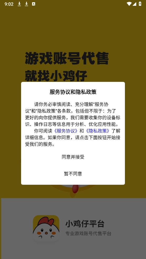 安装小鸡仔代售,同意相关的政策与协议之后打开。