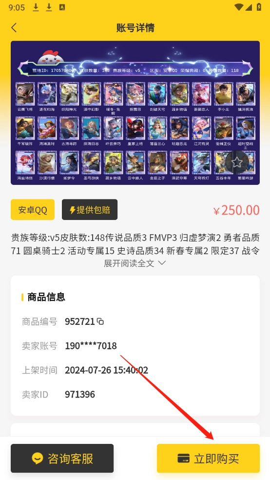选择好需要的账号之后点开,点击“立即购买”即可。
