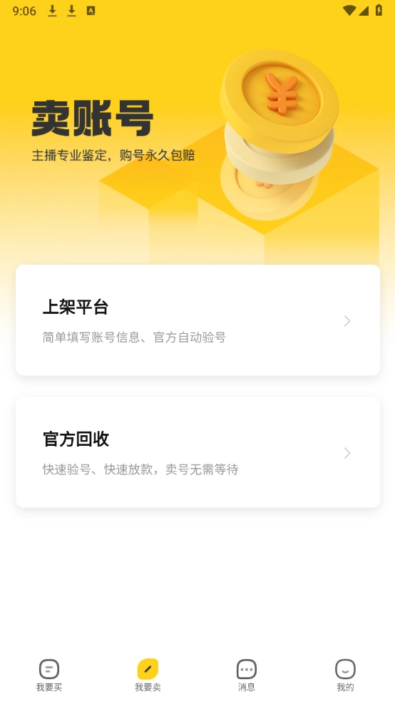 点击“我要卖”板块,填写账号相关信息,等平台审核通过后就能进行发布了。