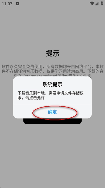 在2G游戏网的好酷我歌单解析助手,需要授予权限来保存文件。