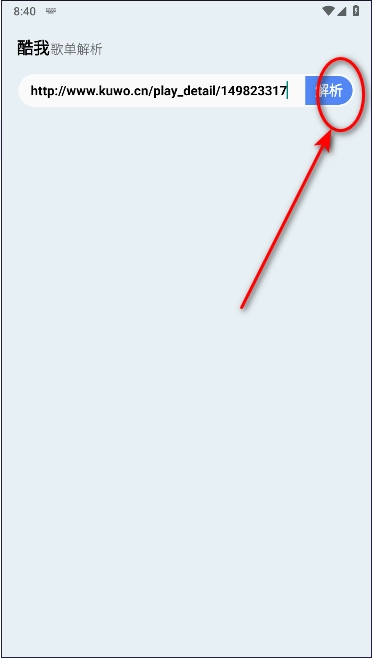 把从酷我音乐复制好的歌曲链接粘贴到酷我歌单解析助手里面,然后点击“解析”按钮。