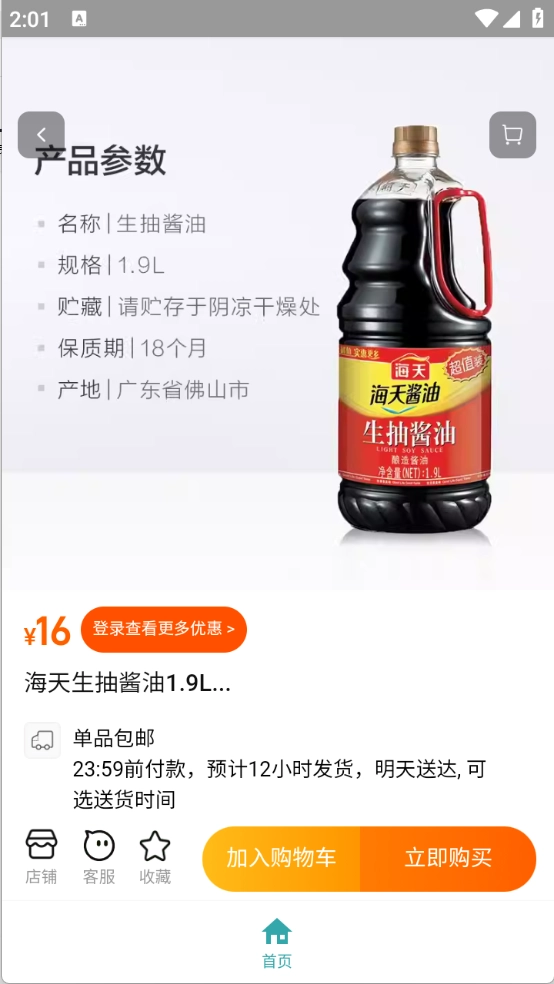 点击商品进入详情页面后,你既可以把商品添加到购物车,也能直接选择立即购买,此外还能联系客服咨询问题,或者收藏店铺以便后续查看。