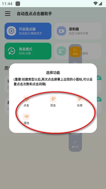 创建完成后,点击屏幕上弹出的小图标,就能对次数和点击间隔进行设置。