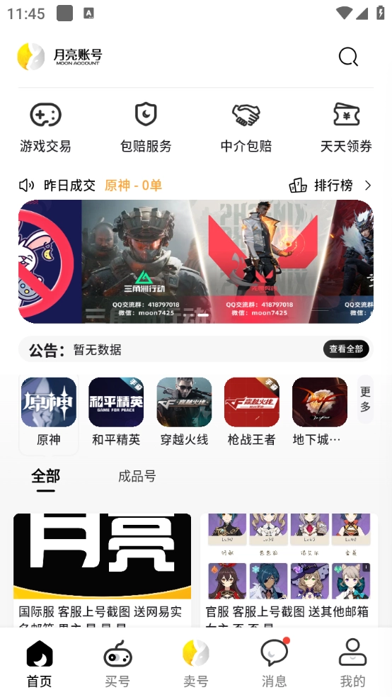 月亮代售是专为玩家搭建的线上游戏账号交易平台,涵盖和平精英、蛋仔派对、王者荣耀等热门游戏账号交易业务。平台对每一款上架账号均进行严格审核,确保玩家能安心选购;同时,玩家也可在此出售自有游戏账号以获取收益。总而言之,这是一个值得信赖的游戏账号交易平台。