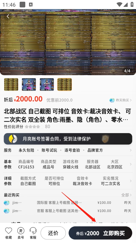 直接点击你想购买的账号进入详情页面,要是觉得合适,就能点击“立即购买”按钮。