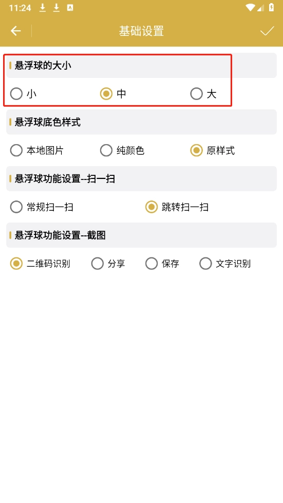 悬浮扫码软件如何设置悬浮球大小
