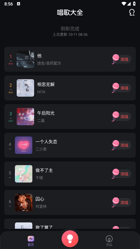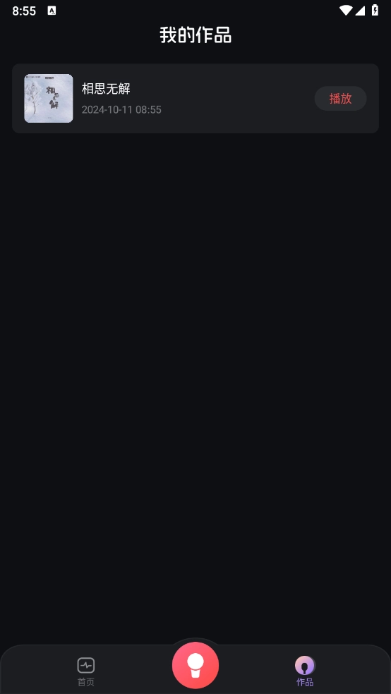 保存完成后返回首页,就能在“作品”板块里找到并查看自己录制好的歌曲了。