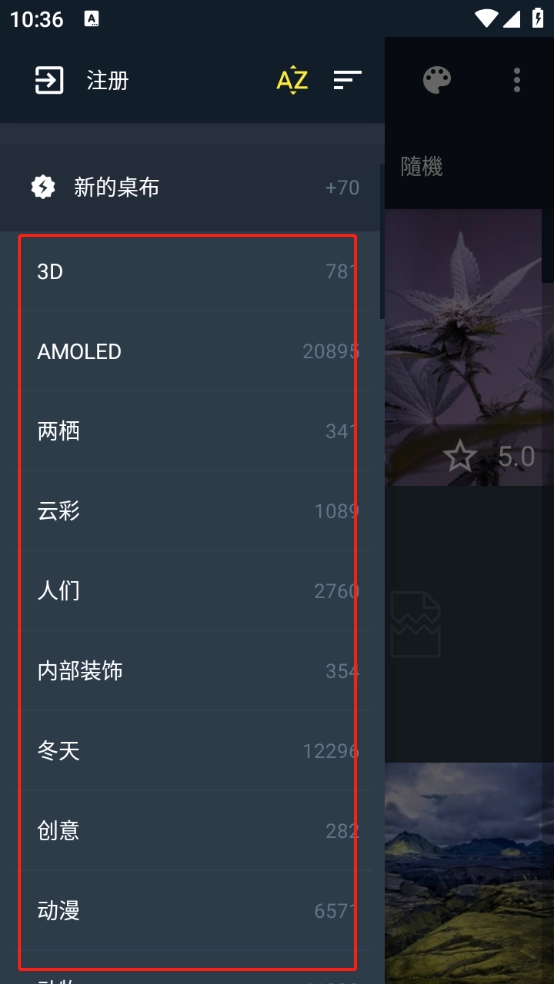 点击左上角的三条横线图标,这里为大家提供了各类详细的壁纸分类。