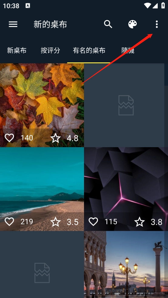 进入首页后,能看到丰富的壁纸资源库推荐,这些推荐分别按照最新、评分和人气三个维度进行排列。
