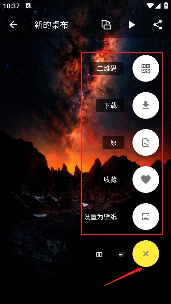挑选你喜爱的壁纸进入详情页,点击“+”按钮,就能对该壁纸进行收藏、转发等操作。