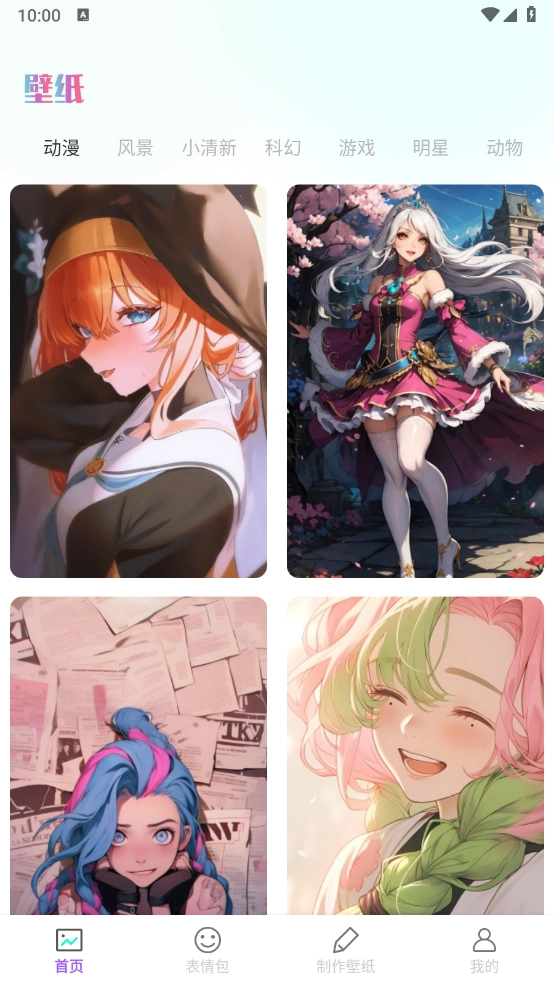 打开软件后,能看到分类细致的壁纸资源,涵盖动漫、风景、小清新等多种类型。