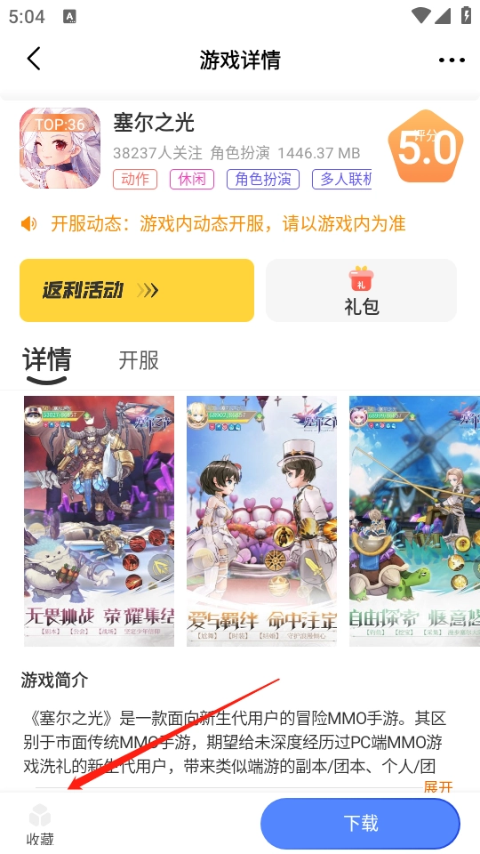 浏览并点击你想玩的游戏资源,就像小编选择的“赛尔之光”那样。