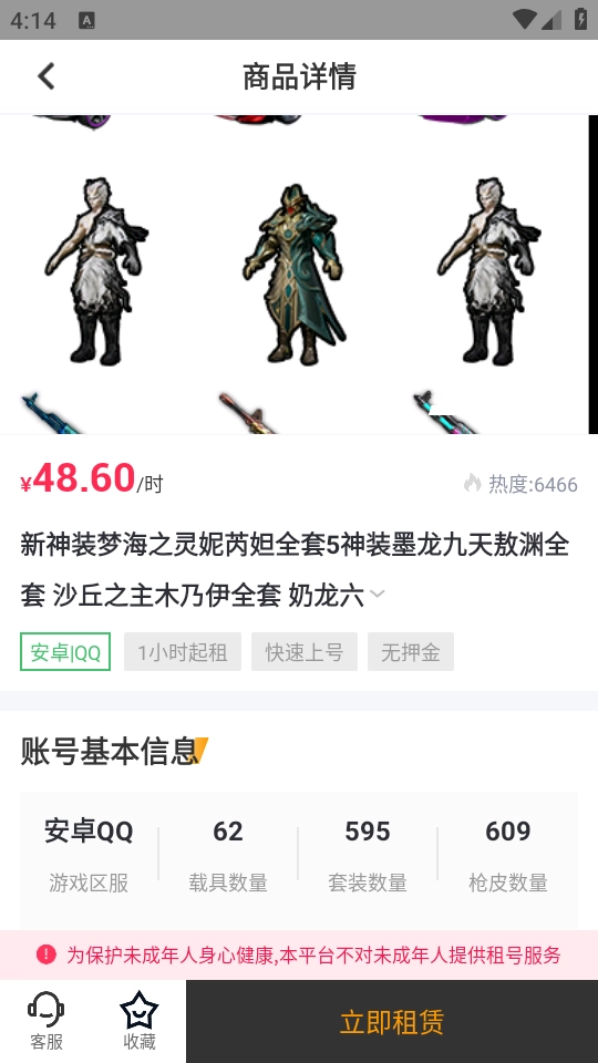 点击想要的游戏账号,点击“立即租赁”即可。