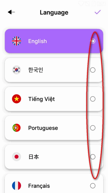 勾选上需要的语言点右上的√即可设置语言。