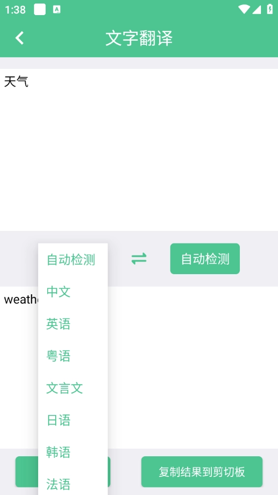 直接在输入框内填写需翻译的内容,选定目标语言后点击“翻译”按钮,翻译结果支持复制操作。