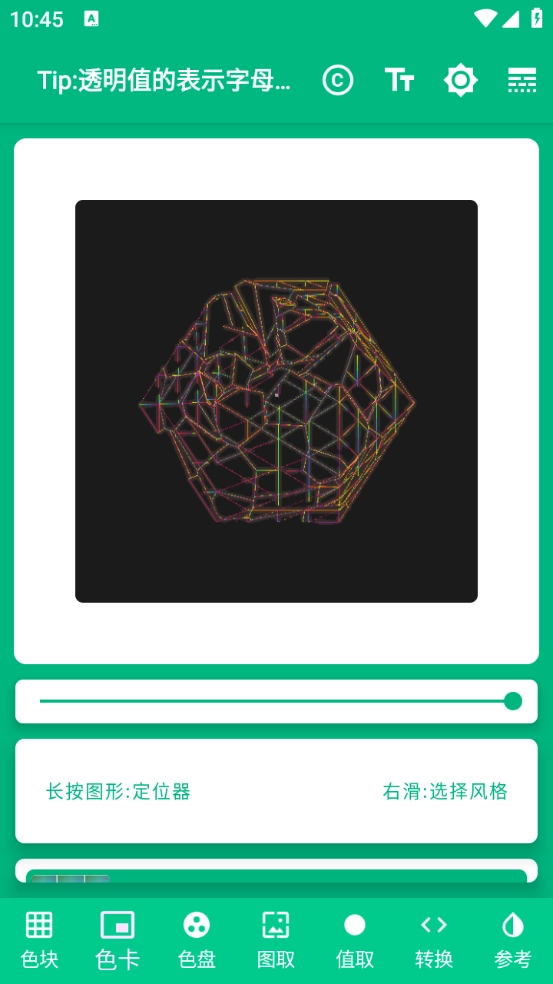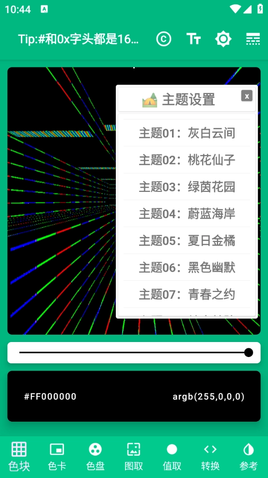 您可以选择本地图片或网络图片来取色,点击"+"号选择图片,再次点击可清除图片,继续点击则重新选择图片。当您选好图片后,若直接复制颜色值,会将操作提示的其中一句话复制到剪贴板,您需要通过拖动预览图中的准心,或拖动其下方的横坐标、纵坐标来获取图片中的颜色。需要注意的是,拖动图片预览区的准心时,需先上下微微拖动以确保拖拽顺利;若手指刚接触屏幕就左右拖动,会激活左右翻页功能。由于界面包含多个滑动控件,因此您需要采用恰当的触控方式来获得对应的操作响应。