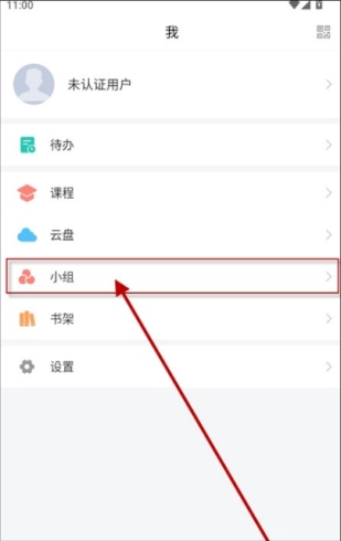 安装完成后,点击右下角的“我的”,接着选择小组并进入小组页面。