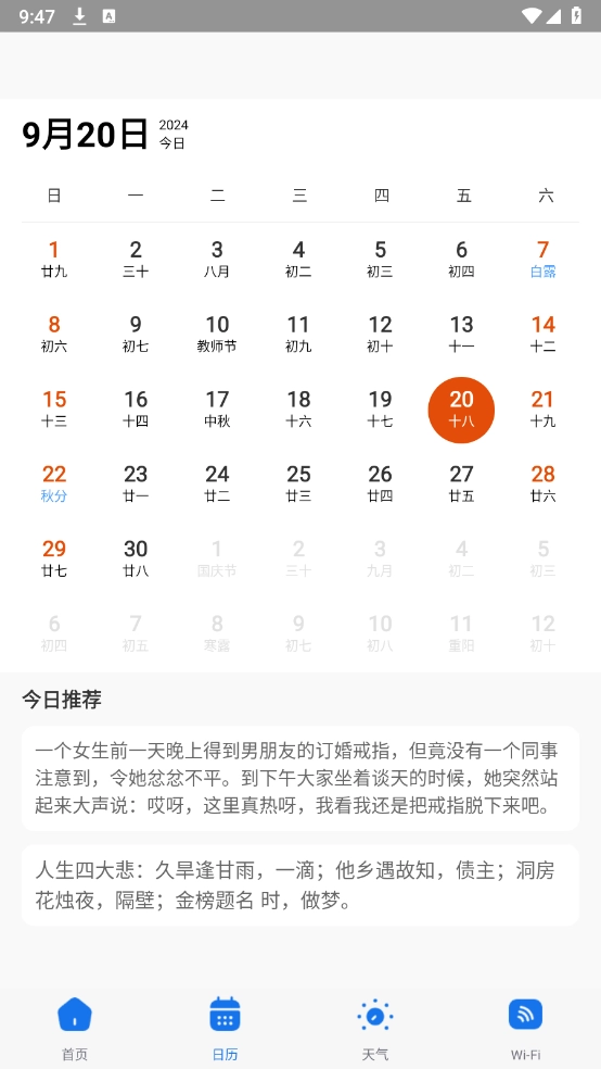 中包括首页、日历、天气以及无线网板块。