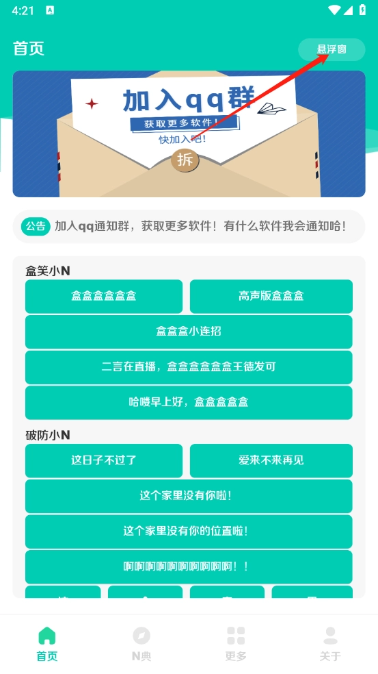 返回到首页,就可以看到左上角的悬浮窗标志了。