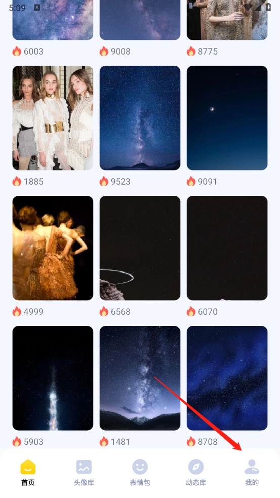 进入后,底部栏包含多种类型,壁纸、头像和表情包都在其中。