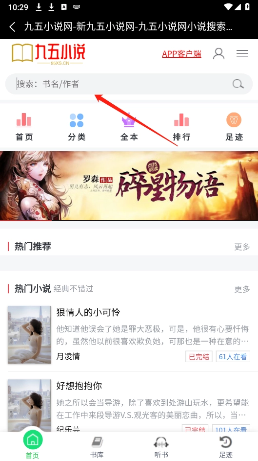 安装九五小说,进入软件。