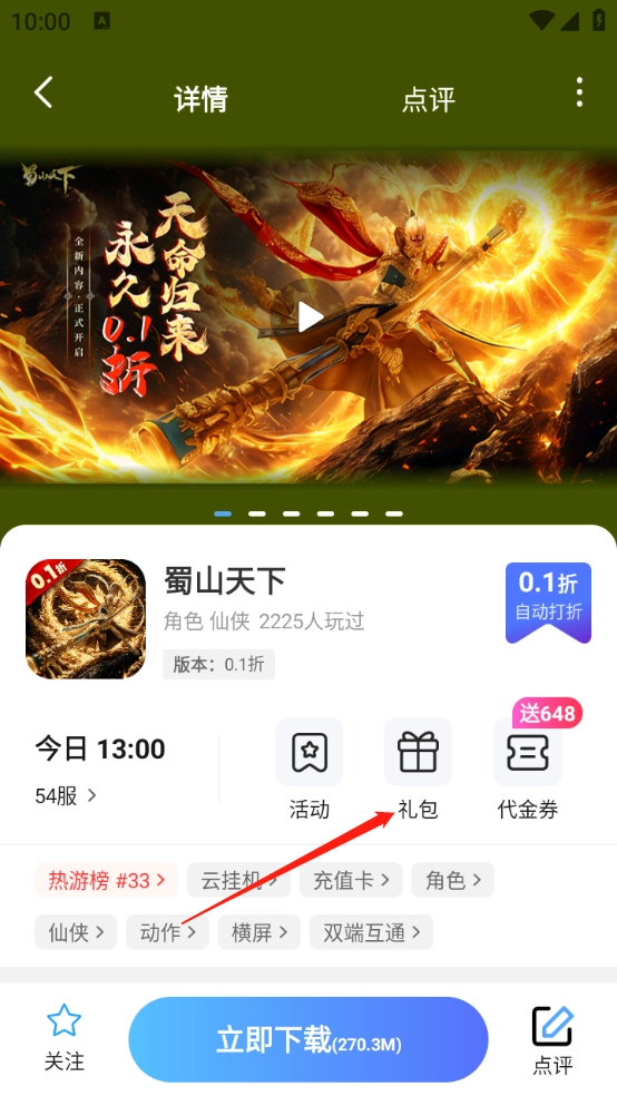 你平时爱玩游戏吗?掌上折扣玩是一款专为游戏玩家打造的游戏盒子,里面汇聚了海量游戏资源,无论是三国题材、传奇类还是射击类等应有尽有。而且每款游戏都配有详细的图文介绍和游玩攻略,玩家还能对游戏进行评价。此外,这里还有超多福利资源可以免费领取,平台每天都会更新热门爆款游戏,帮助大家及时发现更多有趣的游戏。