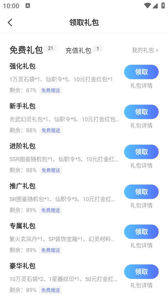 还有很多游戏礼包免费领取,获得想要的游戏福利。