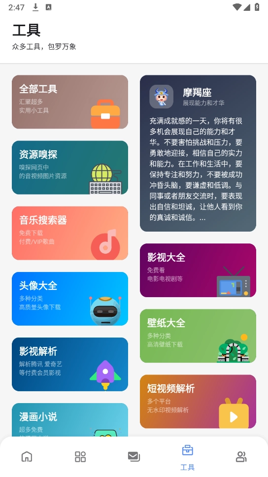 来到“工具”页面,有很多实用工具可以直接使用哦。