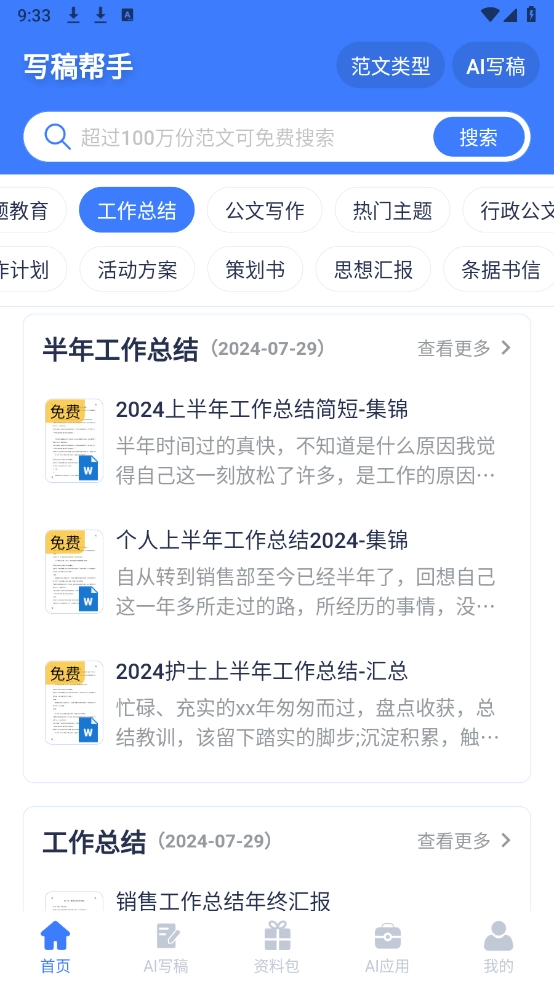 进入首页后,这里提供了丰富多样的范文,涵盖多种类型,你可以通过关键词搜索功能找到自己需要的内容。