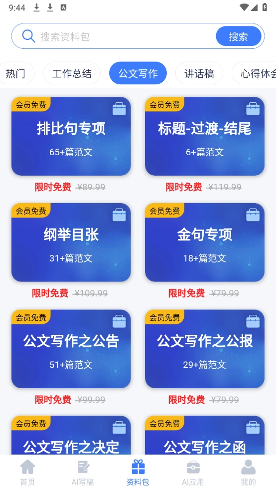 在“资料包”和“AI应用”这两个板块里,收集了不少资料,其中部分内容需要成为会员才能查看呢。
