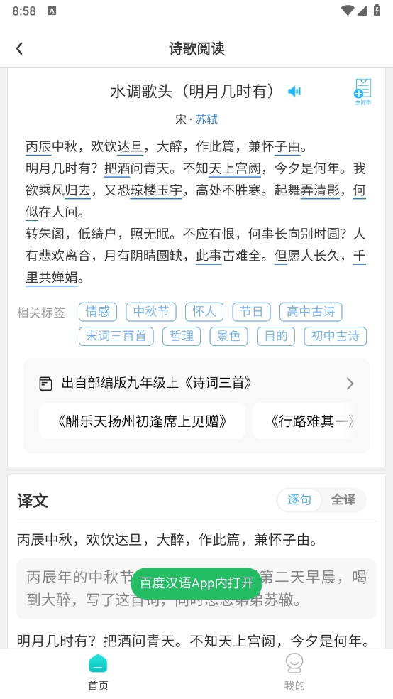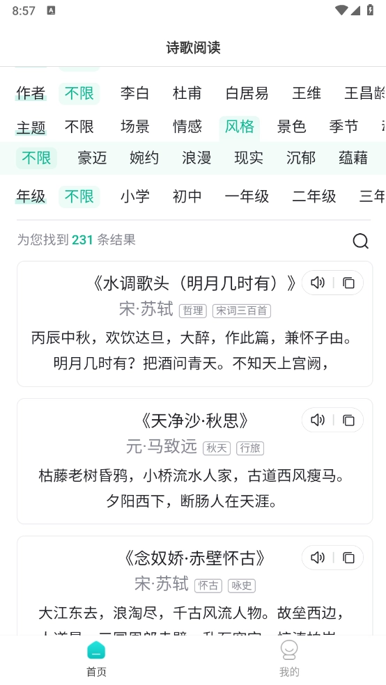 为了帮助学生用户积累更多古诗知识,这款软件配备了诗歌朗读功能,用户能够聆听专业的朗读音频。