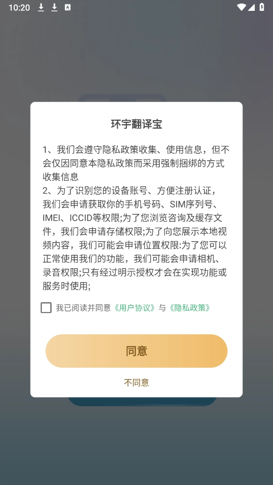 安装环宇翻译宝,同意相关的政策与协议之后打开。