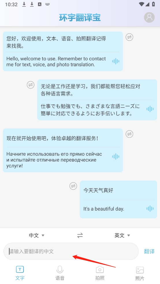 文本翻译功能支持输入多种类型的文本,能实时提供高质量的翻译内容,确保翻译结果更加精准。
