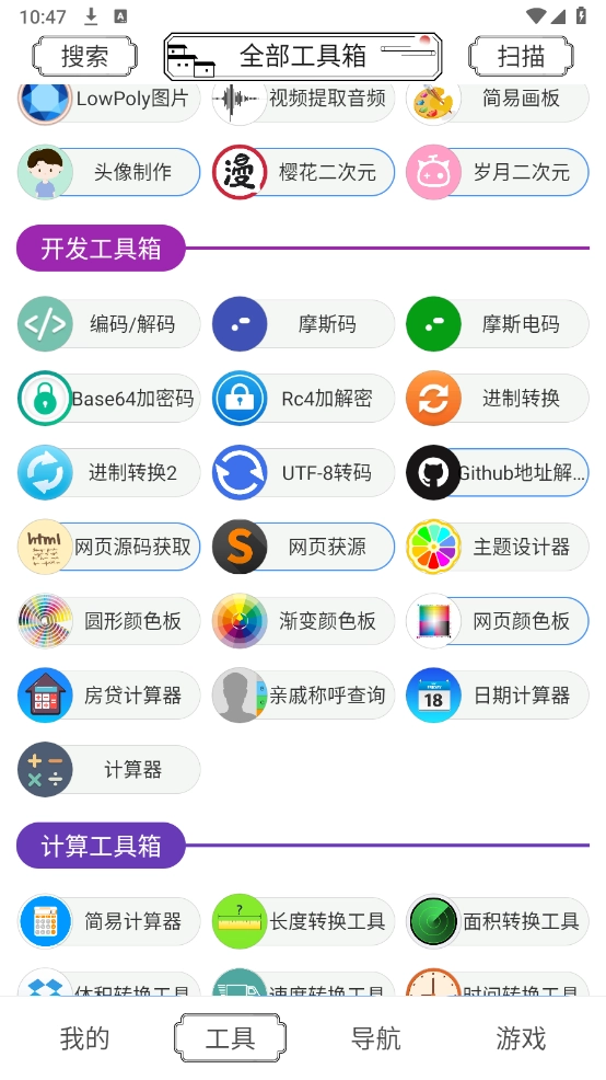 荷花工具箱是一款功能全面的手机工具箱,整合了各类实用工具、知识导航资源与趣味小游戏。所有板块均为免费提供,分类细致入微,能充分满足日常、办公与学习等多场景需求,且无需安装,即开即用。