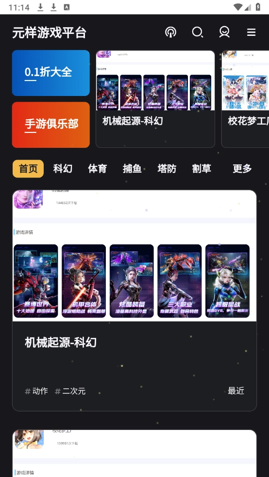 提供超级丰富的游戏资源,动作、二次元以及仙侠射击等都有。