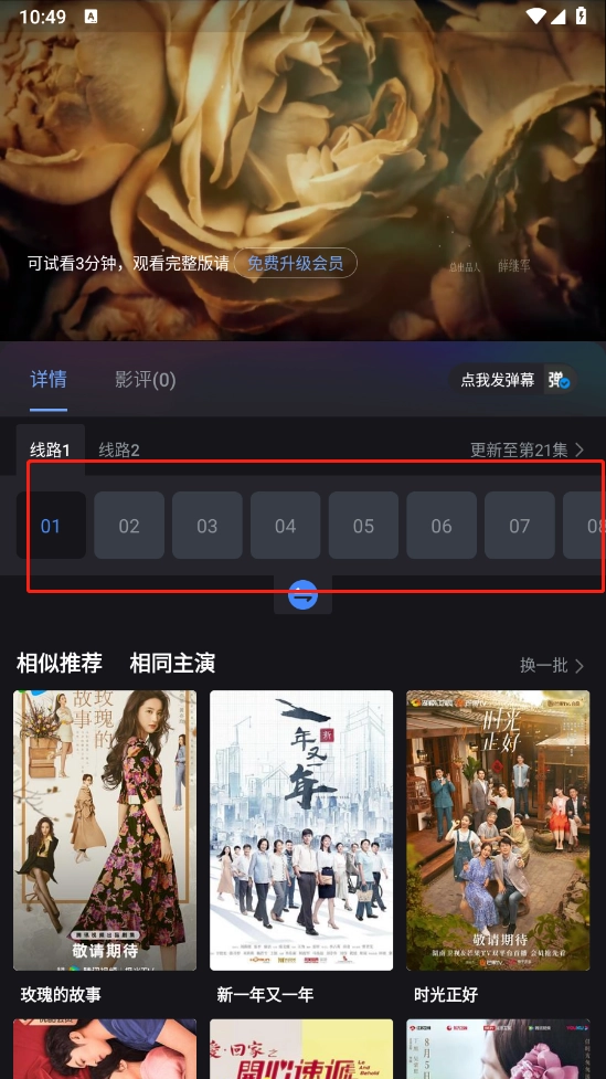 点击你喜爱的影视资源,挑选对应的集数,就能进入正片播放界面了。