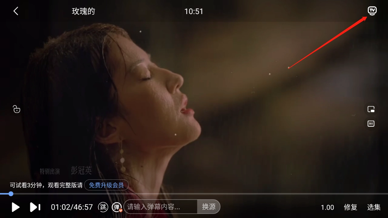 点击右上角的“TV”标志。