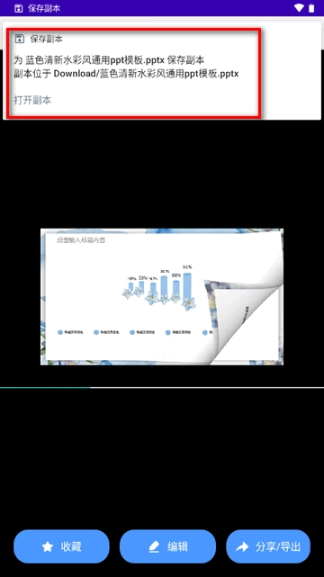 打开PPT效果视频,所有PPT页面都能呈现,接着点击分享按钮进行导出操作。