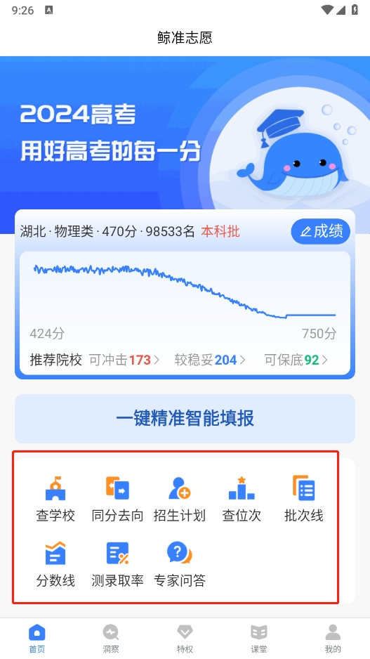 鲸准志愿是一款专为高考学子设计的志愿填报工具,学生只需输入分数、选考科目及报考意向,系统便会推荐合适院校。软件覆盖全国各院校的详细介绍,包括学校概况、师资水平与就业趋势等信息,助力考生科学填报志愿,为每位学生量身定制合理的志愿方案。