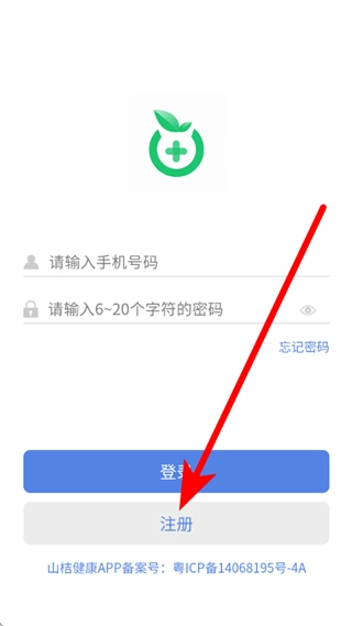 打开山桔健康应用后,当出现隐私政策弹窗时,点击“同意并接受”按钮。