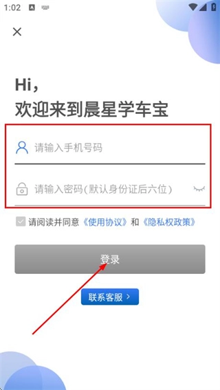 在登录界面输入手机号与密码,勾选相关协议后,点击登录按钮即可完成账号登录流程。