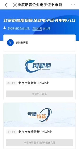 北京市创新型中小企业能够通过线上渠道申领资质证书的电子版文件。