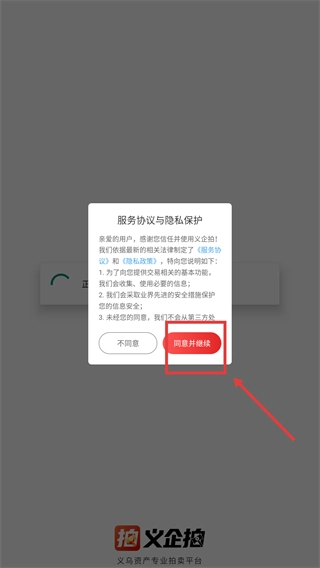 在服务协议和隐私保护的弹窗里,点击【同意并继续】按钮,确认接受相关条款后,就能进入应用的主界面了。