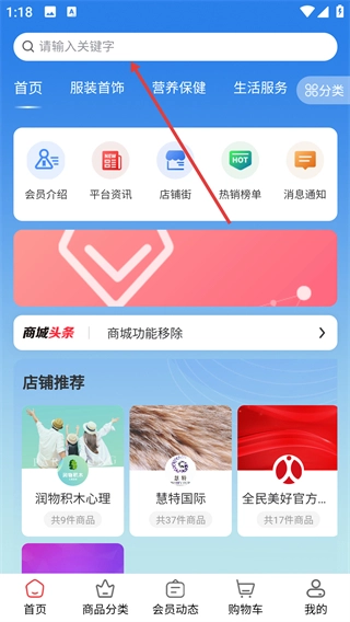 在商城首页点击顶部的搜索框,就能进入商品搜索页面,在那里可以看到热门搜索关键词。